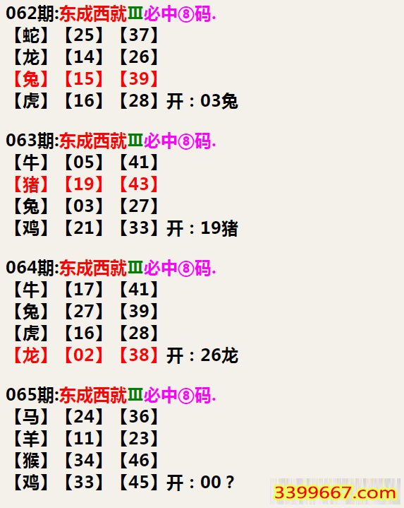 065期:东成西就Ⅲ必中⑧码