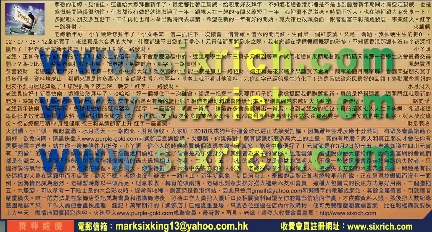 【6】老總新年快樂,龍馬精神,感謝老總放的堅料猛料,紅字:一卒皆驚。明顯一肖馬。論碼許多會員都解出一肖馬,收到老總送的紅包,真的是初七人人生日快樂。希望老總每期都是放簡單易懂的猛料,讓雞報爛圖加快消失,不再坑六友。每次金多寶或獎金高時,我都會到香港賽馬會投注站投注幾組數字,可惜多數是中三個字,與大獎沒緣份。祝老總龍馬精神 身體健康 祝三報業績節節上升 紅字一座皆驚。 ----財息兼收