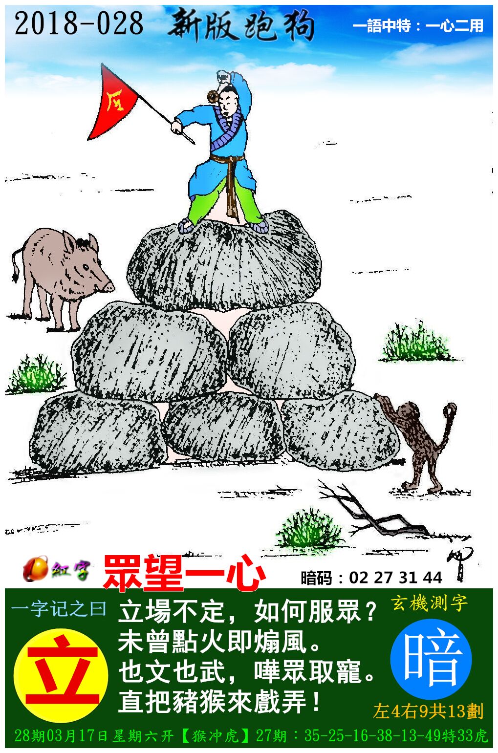 028期:新版跑狗一字記之曰:【立】 玄機測字:《暗》
