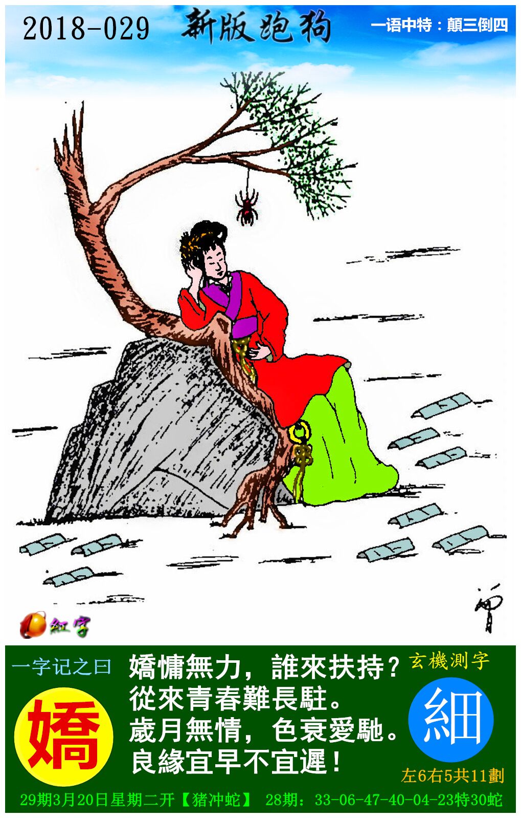 029期:新版跑狗一字記之曰:【嬌】 玄機測字:《细》