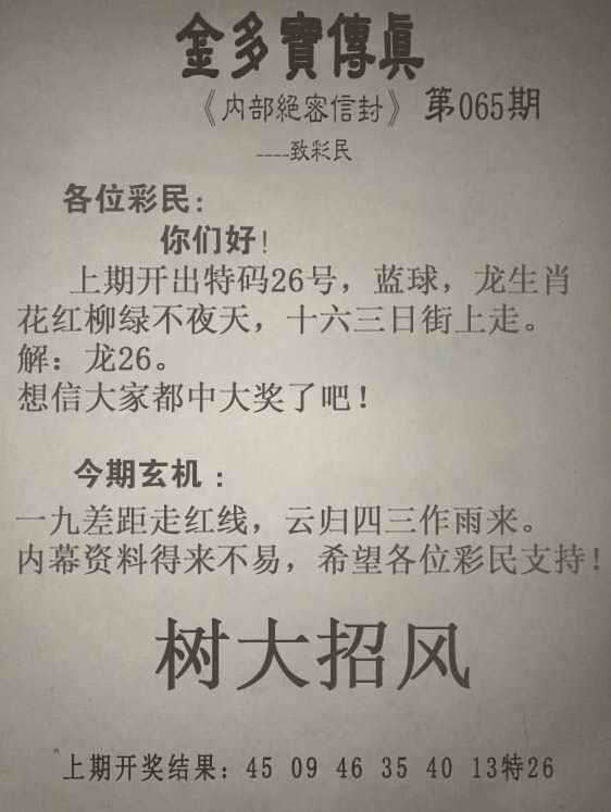 065期:另版【金多寶傳真】