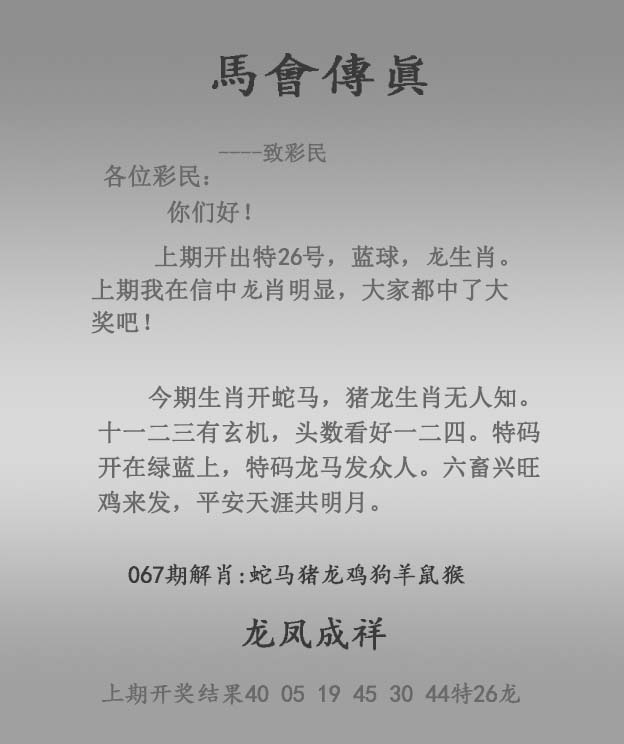 067期:正马会传真