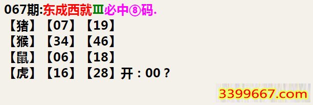 067期:东成西就Ⅲ必中⑧码