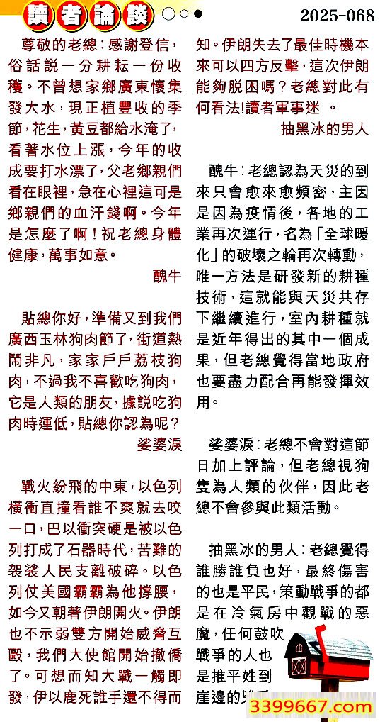 第零六八期讀者論談
