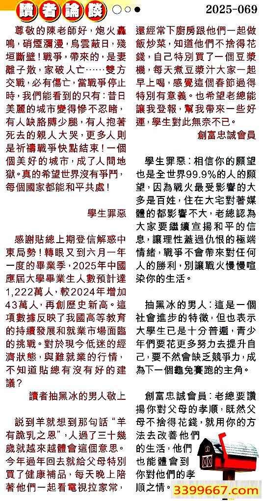 第零六九期讀者論談