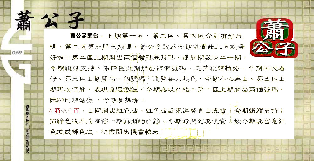 069期:六合皇金句/老总论码/萧公子/林大师/五行夺码/老总信箱截