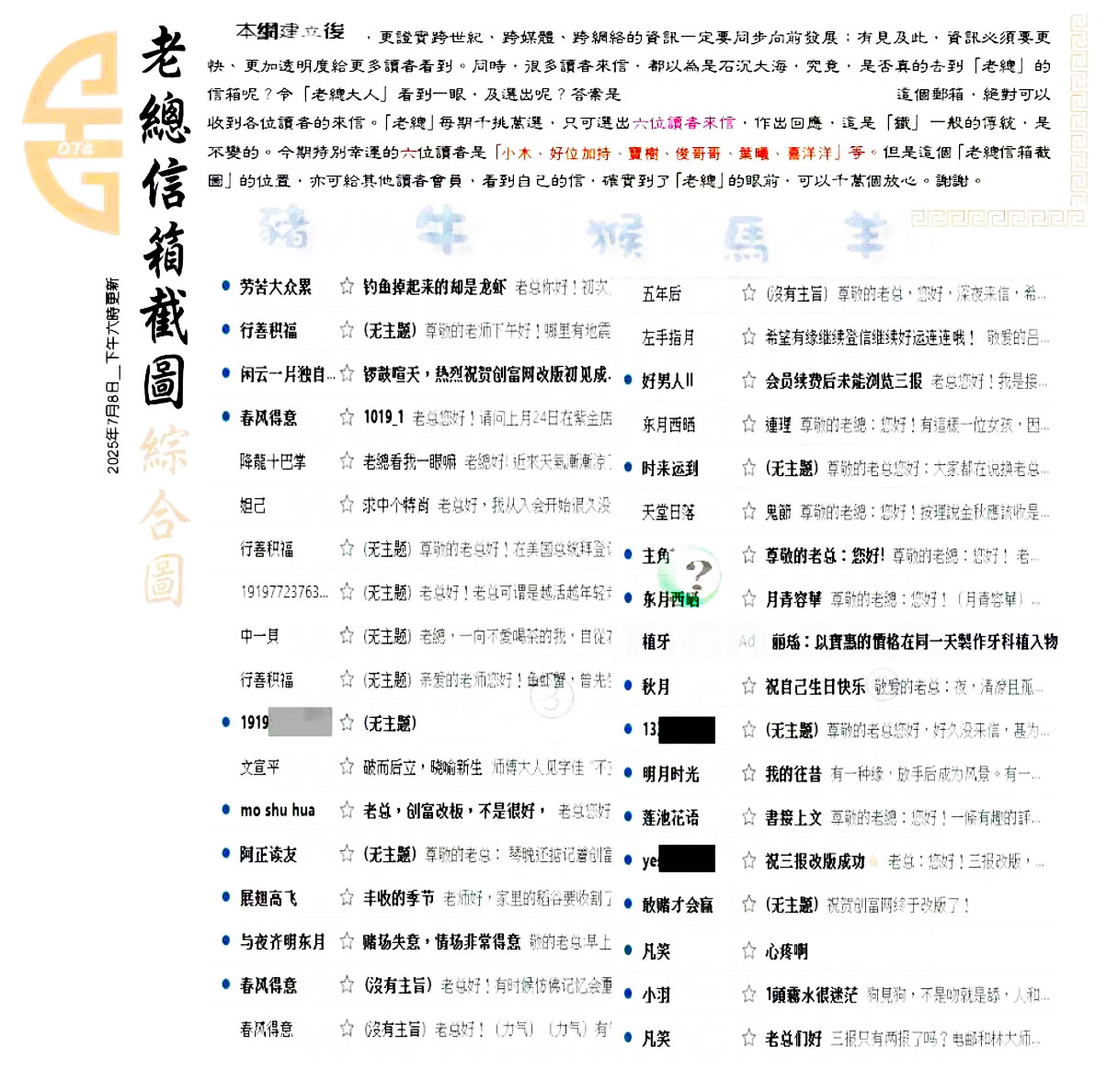 074期:六合皇金句/老总论码/萧公子/林大师/五行夺码/老总信箱截