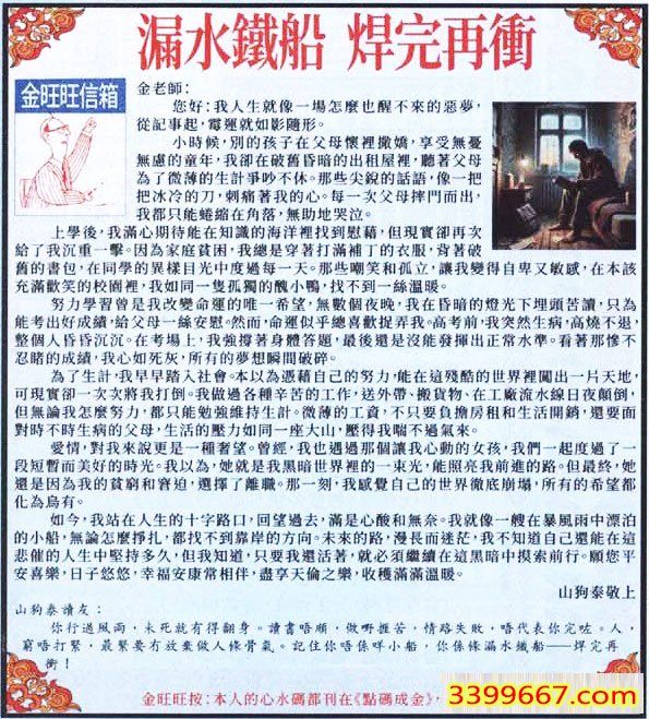 010期:金旺旺信箱彩民推荐→→《漏水鐵船 焊完再衝》