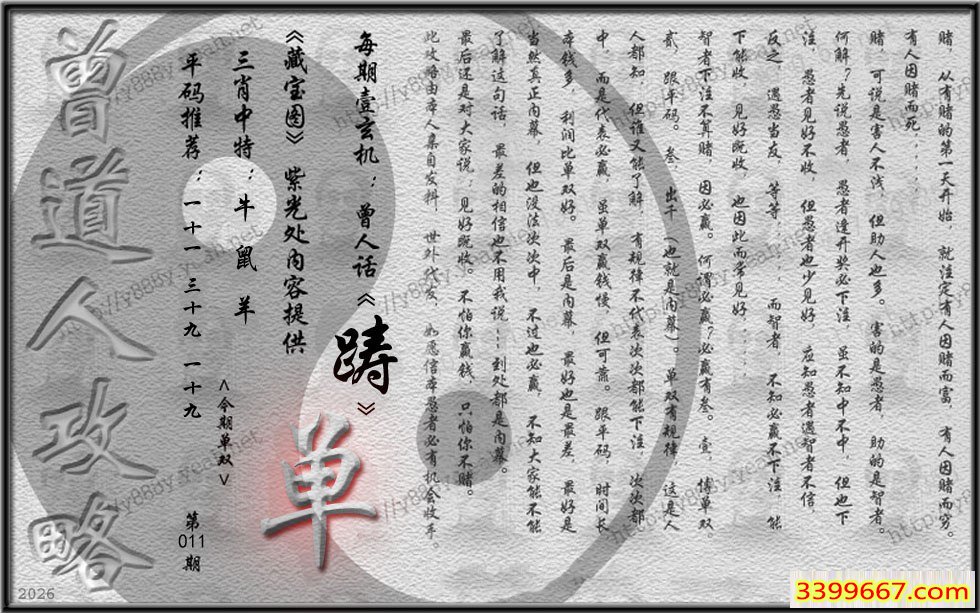 011期藏寶圖 新:因想后湖题柱处 老:汉城黄柳映新帘 禁:虎 禁:4尾