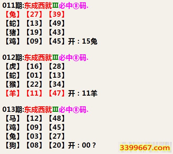 013期:东成西就Ⅲ必中⑧码